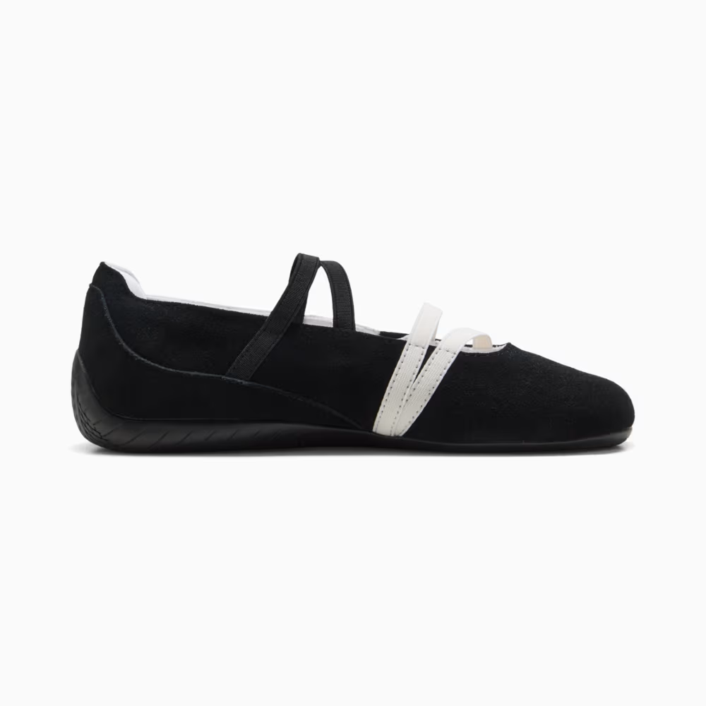 Glide through your day with the Speedcat Ballet, where ballet elegance meets racing DNA. Originating as a fireproof Formula 1 style, these sneakers eventually took over the streets with their unique blend of grace and speed. The suede upper delivers a luxe touch, while the slim, low-profile design ensures you stay light on your feet. Perfect for nailing that ballerina look, these sneakers are accented with rubber bands over the foot and embroidered cat and branding details. Embrace the combination of heritage and modern chic with the Speedcat Ballet.